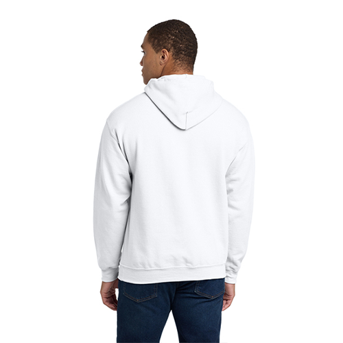 8-ounce, 50/50 cotton/poly Double-needle stitching at waistband and cuffs Double-lined hood with dyed-to-match drawcord 1x1 rib knit cuffs and waistband with spandex Front pouch pocket Recycled, high-performing black tear-away label